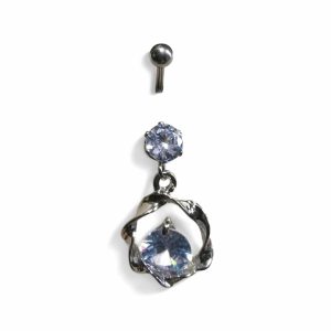 Piercing Buric din Inox cu Zirconiu Cubic și Pandantiv Rotativ – Crystal Spin Drop